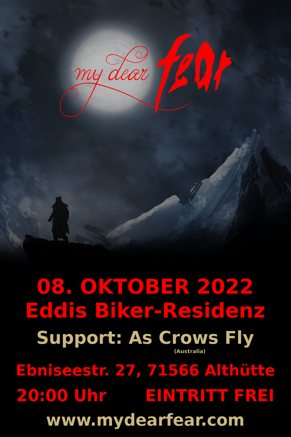 Unterstützung bekommen wir aus Australien: As Crows Fly werden euch einheizen. Lasst der Band gerne ein Abo da und schaut bei Ralphys Radio vorbei.