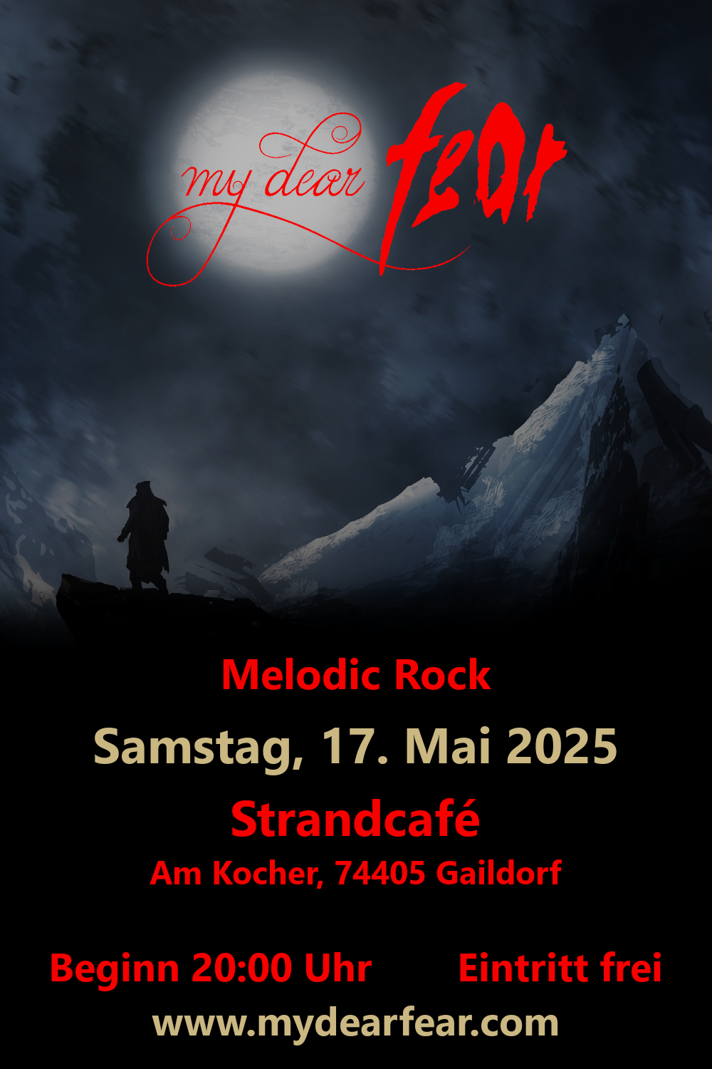 Wir sind super glücklich: my dear fear ist wieder komplett! Nach längerem Casting mit tollen Kandidaten freuen wir uns, dass wir euch Rainer als neuen Bassisten vorstellen dürfen. Rainer bringt mit viel Band-Erfahrung das Groove-Fundament zurück. Aktuell stecken wir mitten in den Proben, um unser Programm mit frischem Drive für euch vorzubereiten. Wir können es kaum erwarten, mit Rainer die Bühne zu rocken und euch unsere Musik live zu präsentieren! Weitere Infos findet ihr auf unserer Band-Seite.
