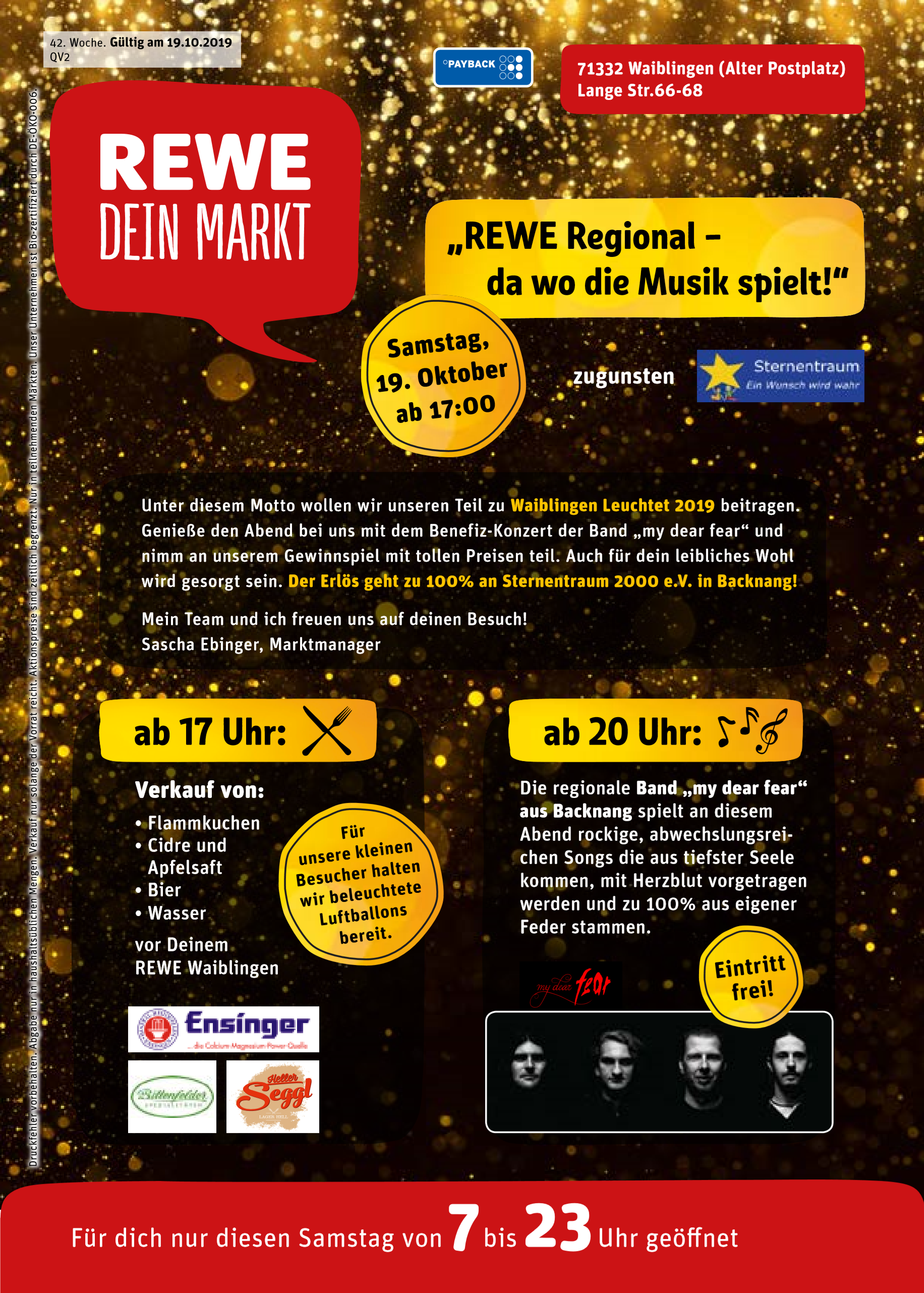 Am 19. Oktober spielen wir ein Benefizkonzert für "Waiblingen Leuchtet 2019". Der Erlös geht zu 100% an Sternentraum 2000 e.V. in Backnang!